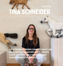 Menschen, Tiere und Natur sind die Motive von Tina Schneider. Wie ihre Motive auch, ist das Material Holz organisch, hat seinen eigenen Charakter und ist dem Zerfall geweiht. Ihre Intention ist nicht eine illusionistische, augentäuschende Oberfläche zu erschaffen. Keine Makellosigkeit, keine Wunschvorstellung von etwas Perfektem. Vielmehr das Einzigartige, das einem Wesen innewohnt, was aber eben nicht an seiner Oberfläche zu entdecken ist. Das zentrale Thema in Tina Schneiders Werk ist die Lebendigkeit an sich, ob diese nun in einer Pflanze, einer Person, einem Tier oder einer Wettererscheinung sichtbar wird, ist letztendlich gleich.